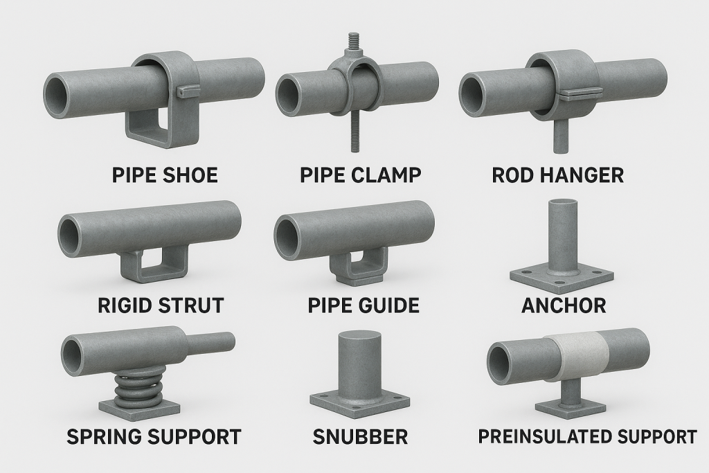 - Flexible Supports (ساپورت انعطافپذیر): اجازه حرکت کنترلشده را در اثر تغییرات حرارتی یا بارهای موقتی میدهند.
